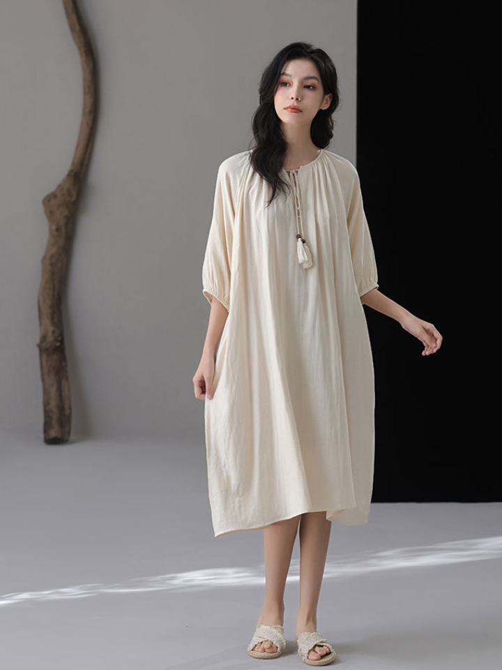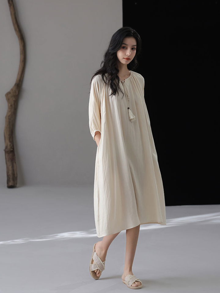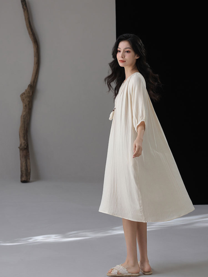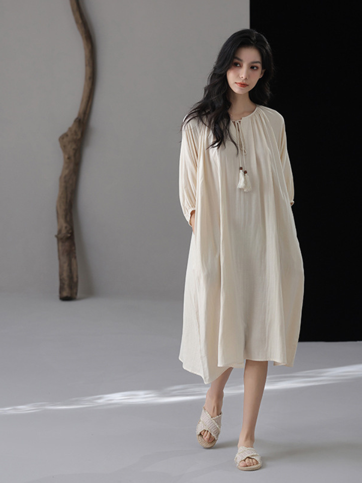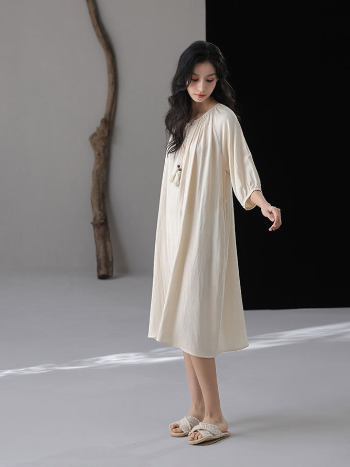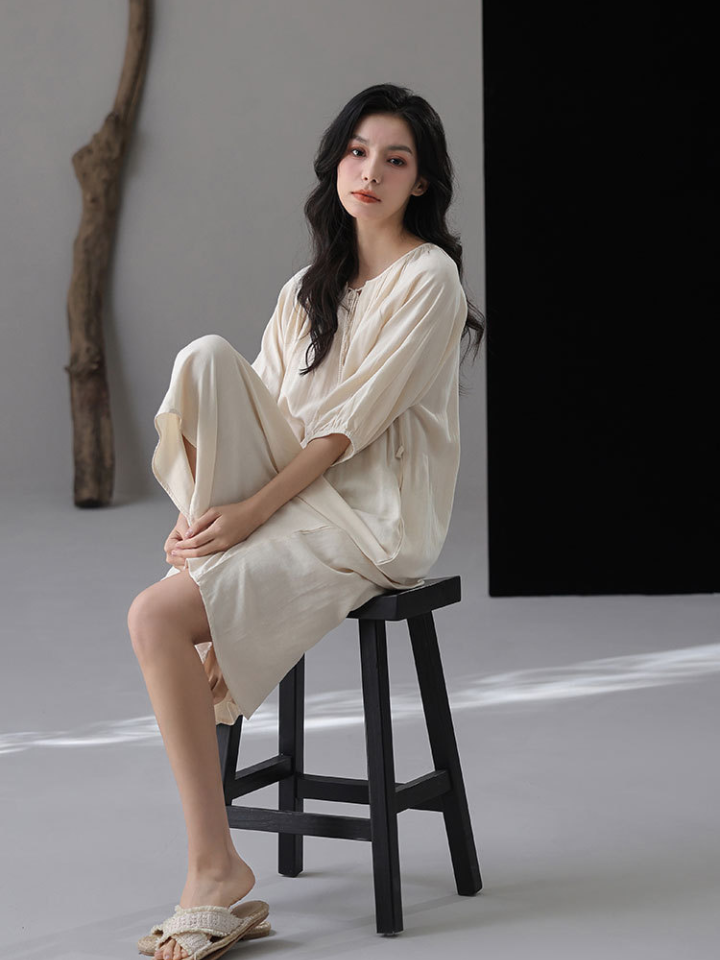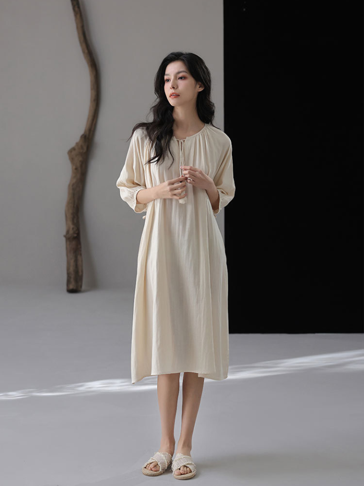大人にふさわしいクラス感をたたえた存在感のあるルームワンピ。