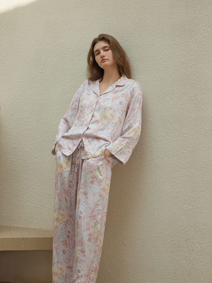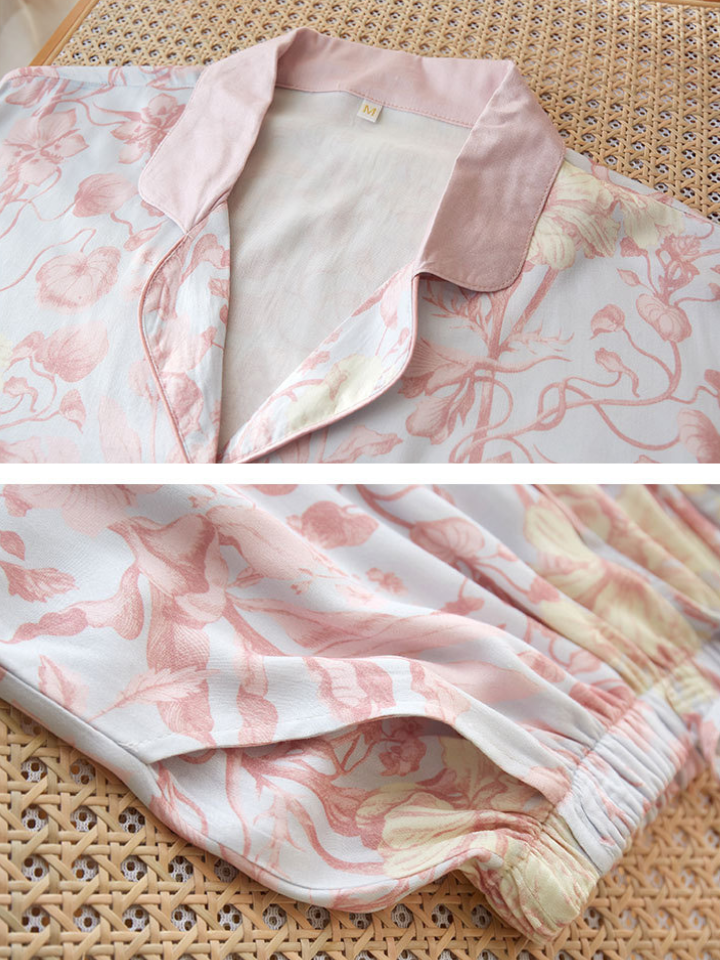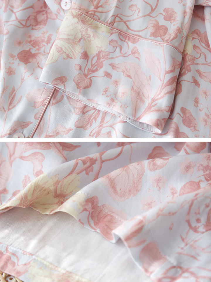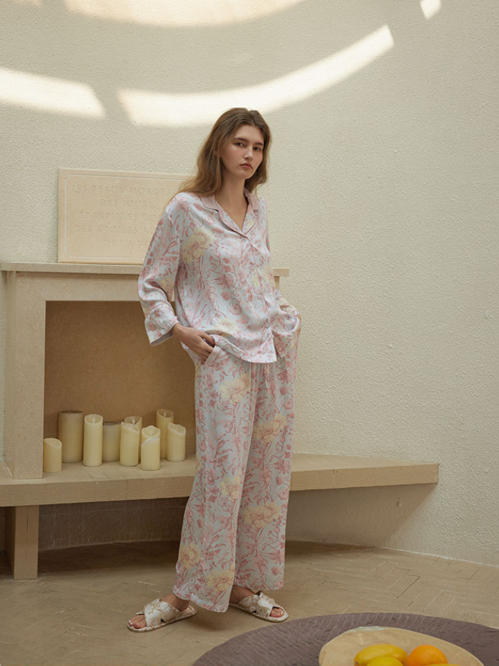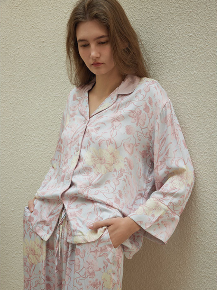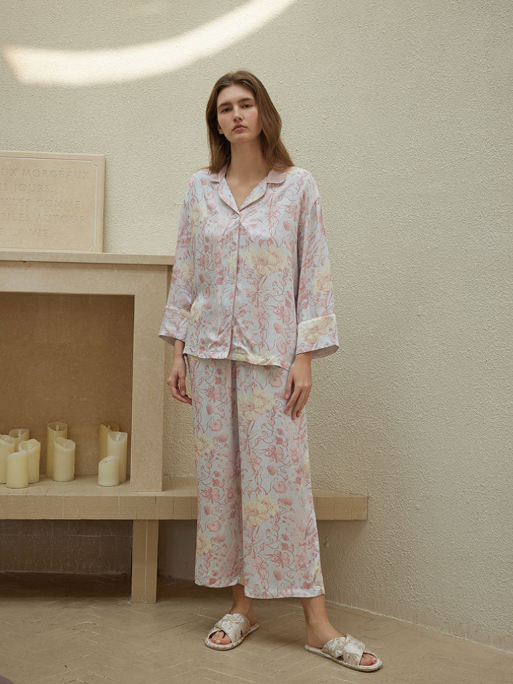 サテンフラワー ラペルカラーパジャマ(2バージョン)