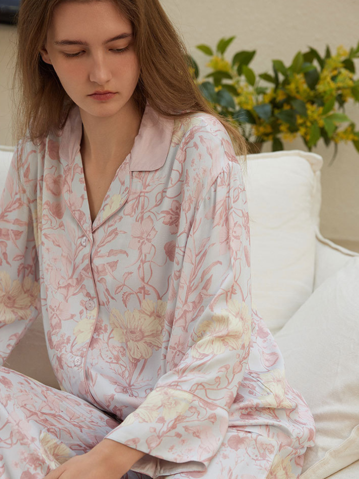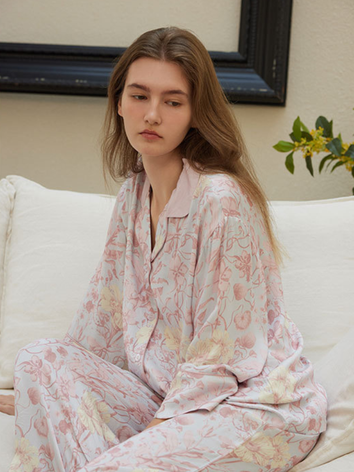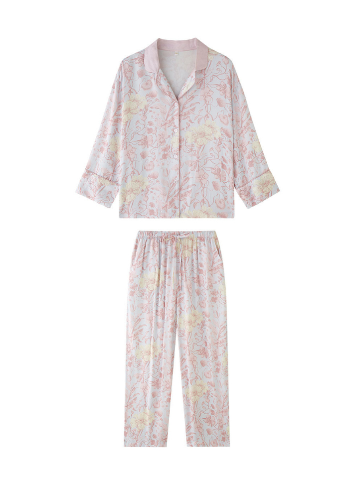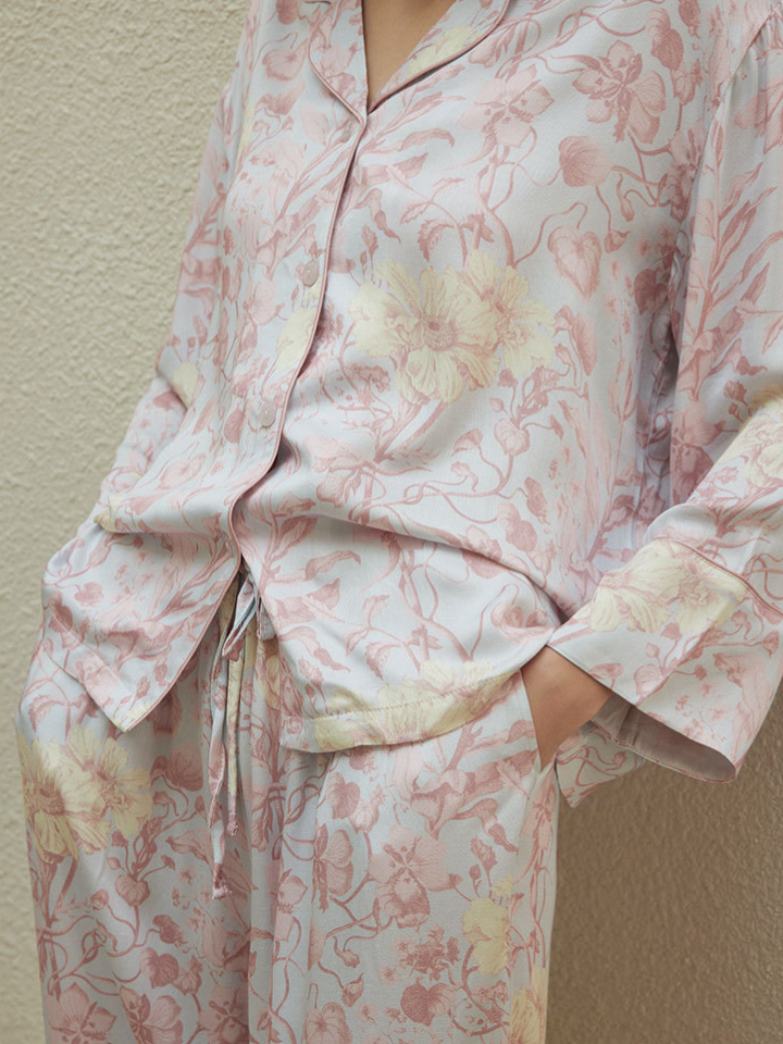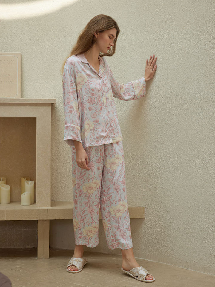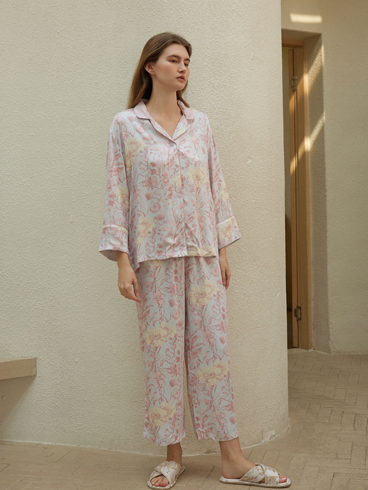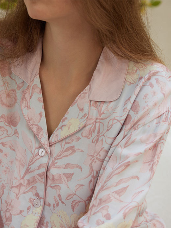 サテンフラワー ラペルカラーパジャマ(2バージョン)