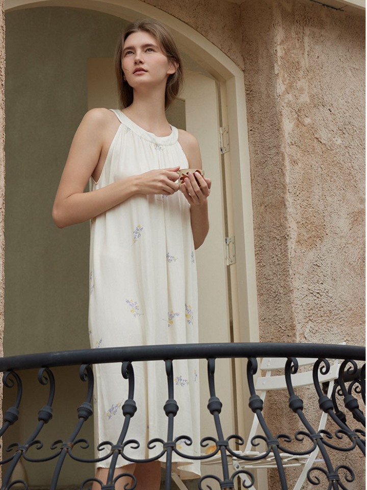 繊細なすずらんプリントが清楚な雰囲気を醸し出す。