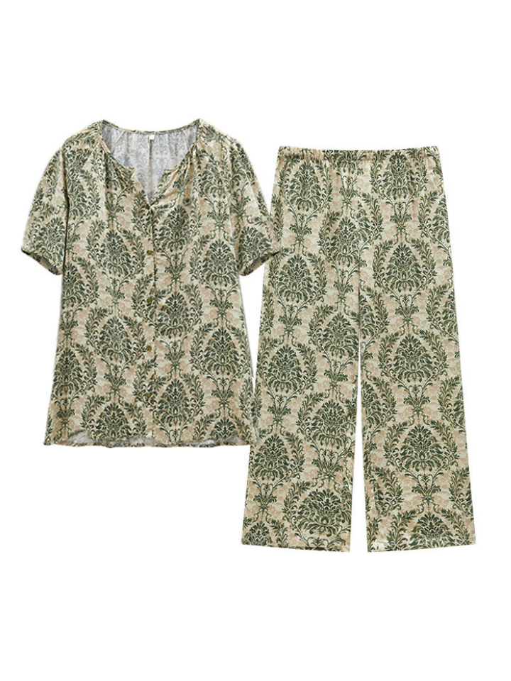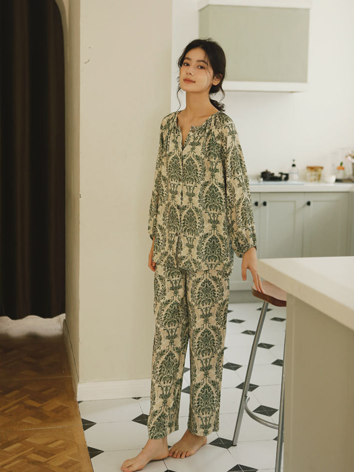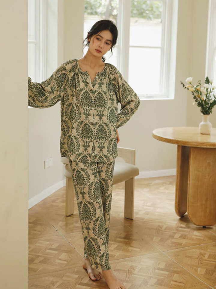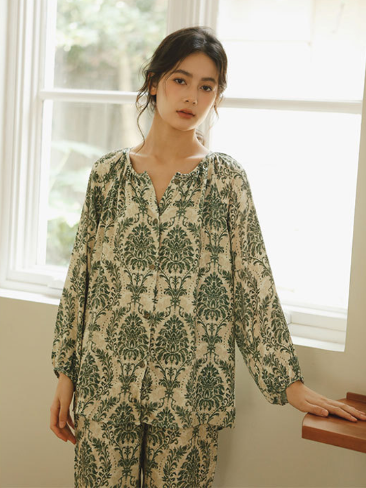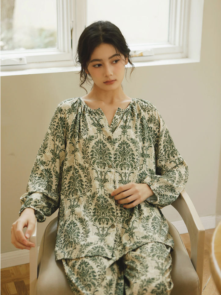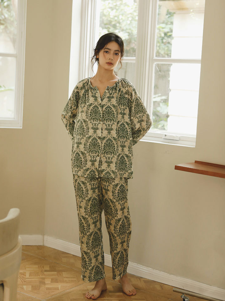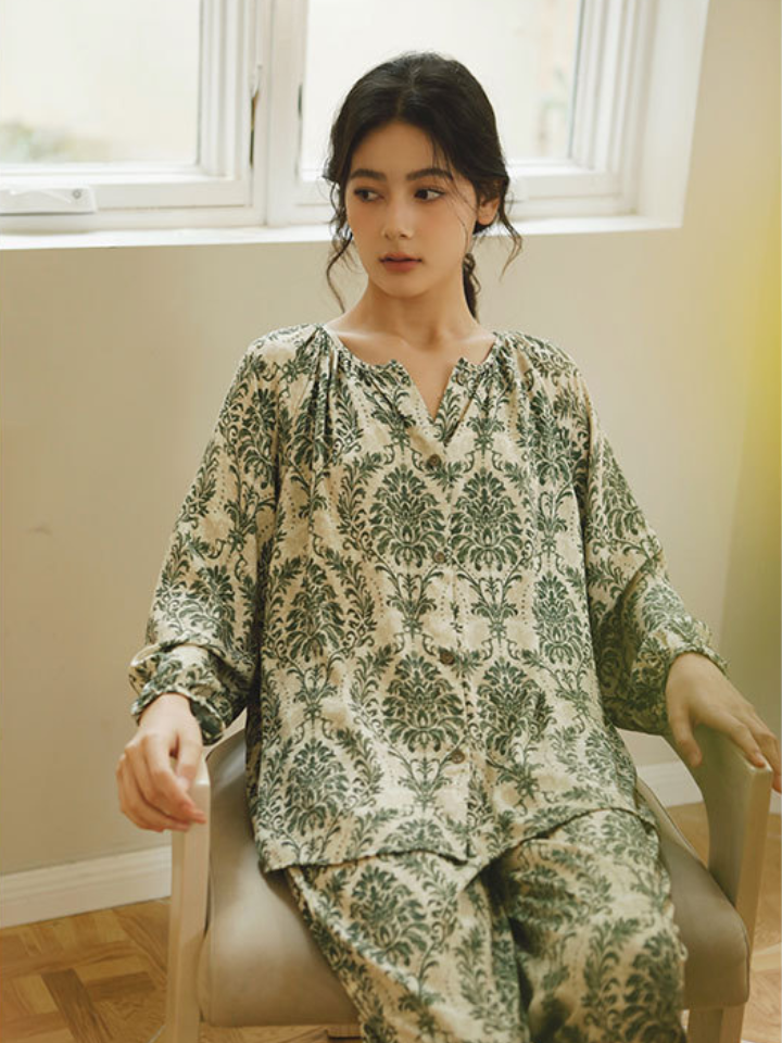 ナチュラル小枝プリント サテンパジャマセット