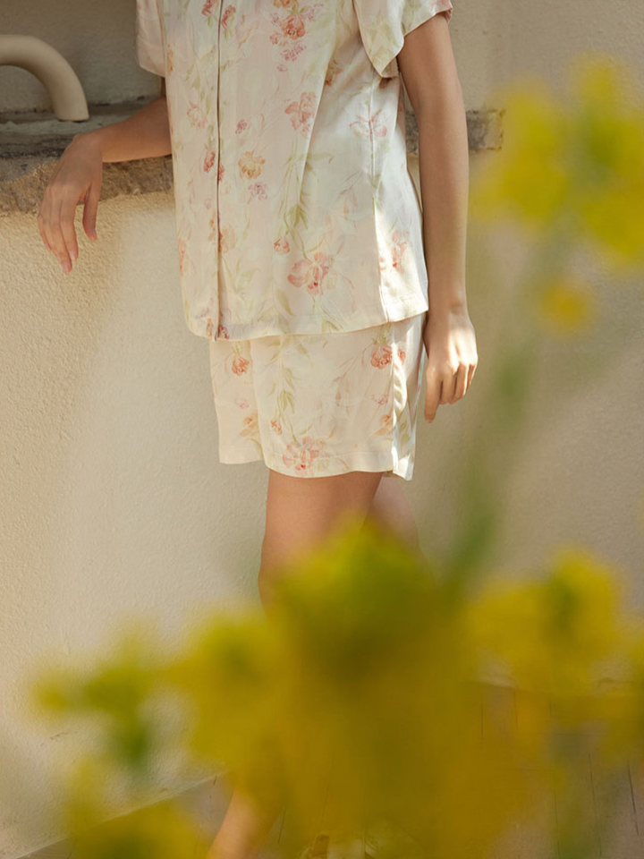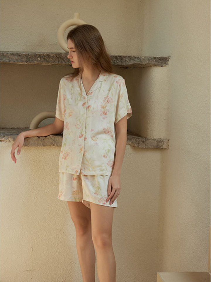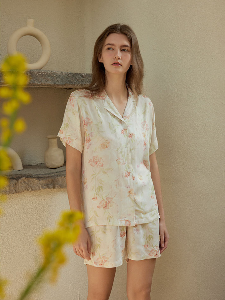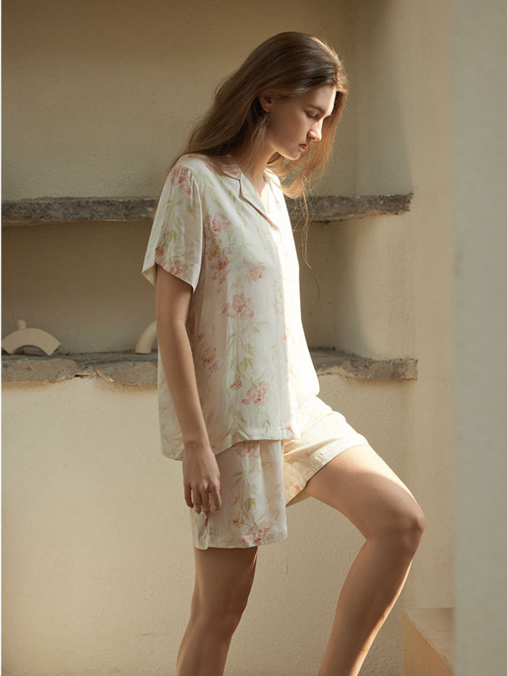 フラワーパターンが大人の品を引き立てる涼しげパジャマセット