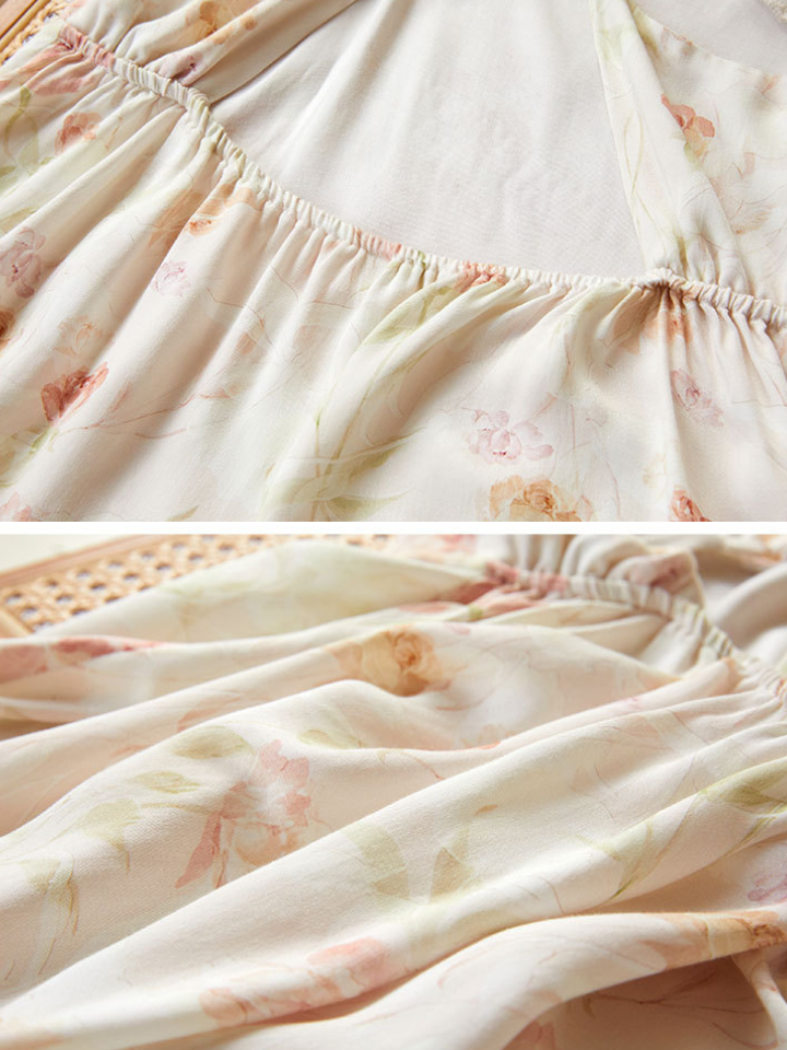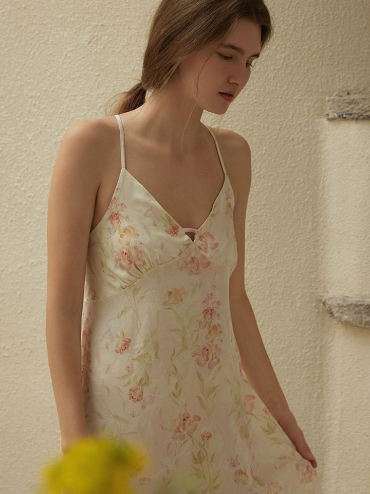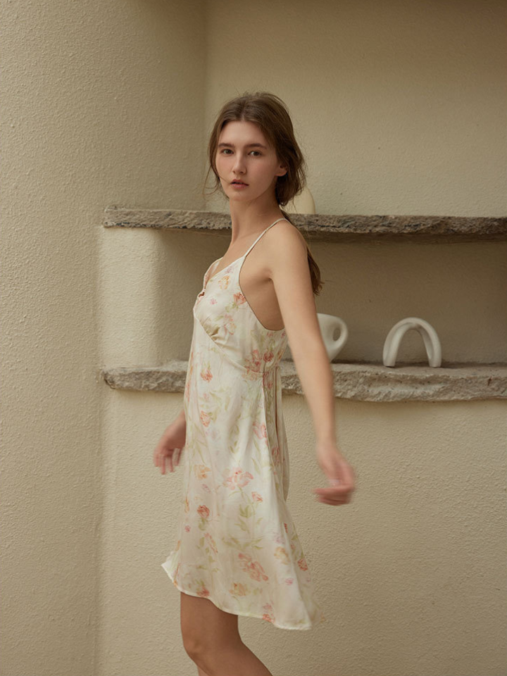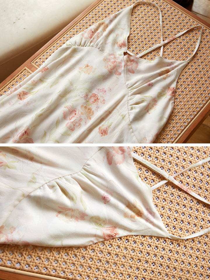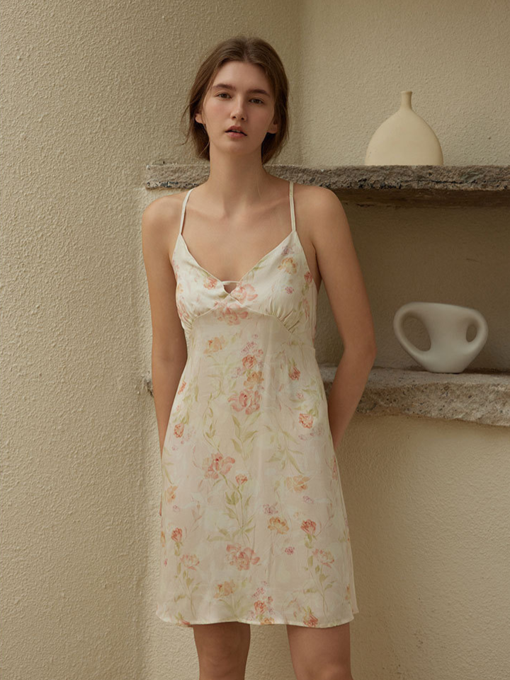 フラワーパターン フェミニンサテンルームワンピ