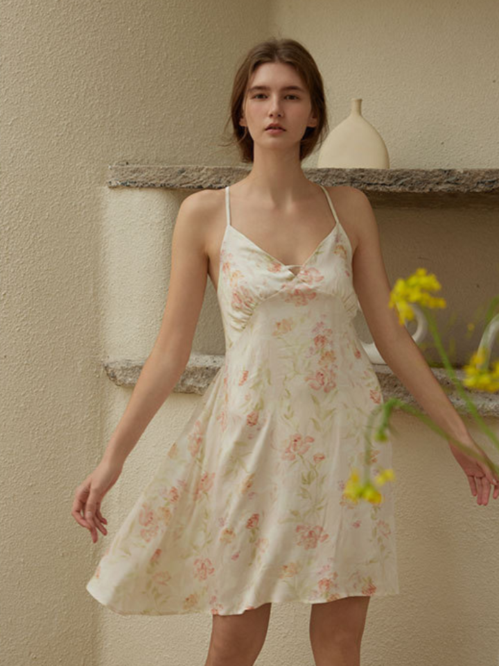 繊細な肩紐はバッククロスデザインで、肩や背中をきれいに見せます。