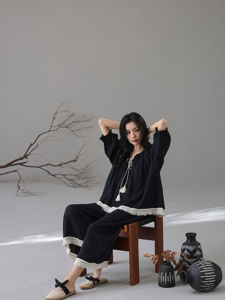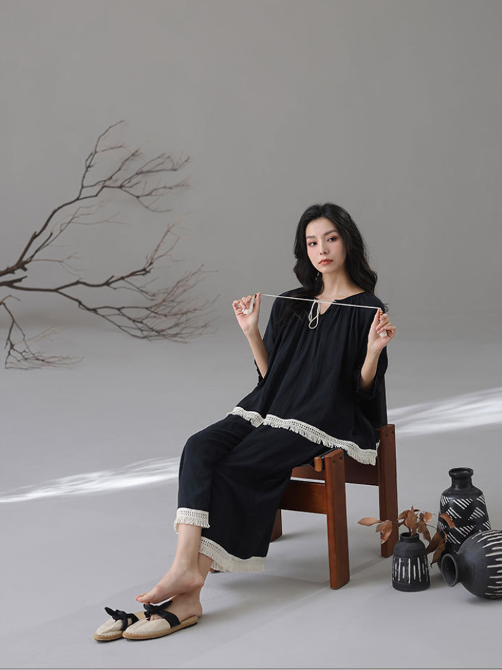 七分袖のゆったりデザインが、暑い夏の夜も涼やかに過ごせます。