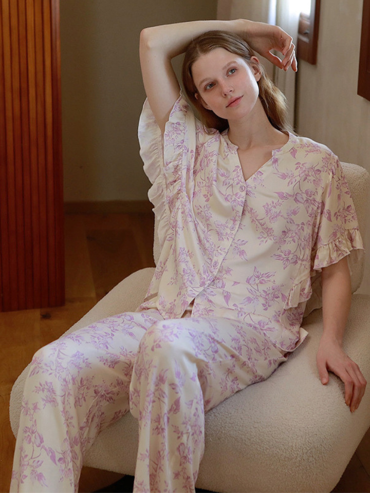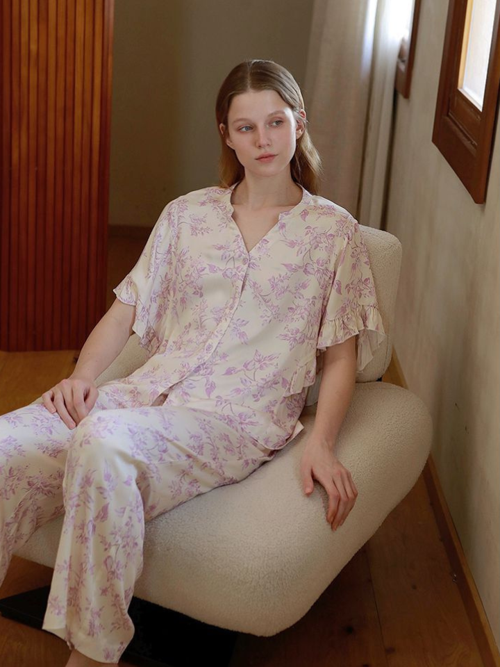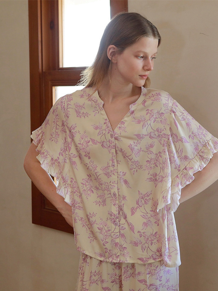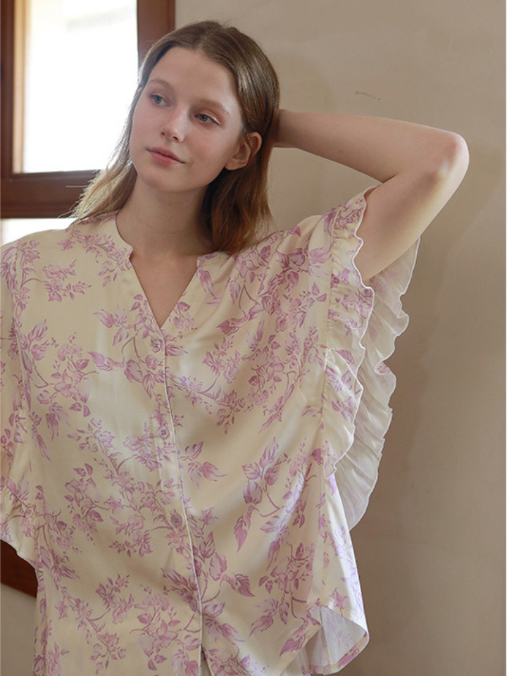 【 レーヨンサテン 】バタフライスリーブ パジャマセット