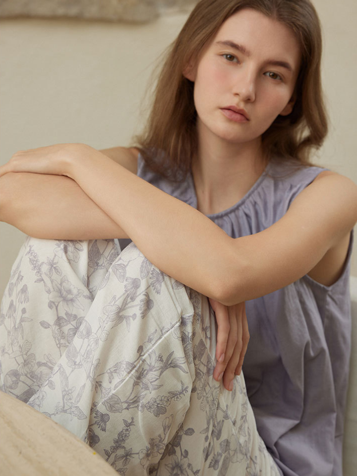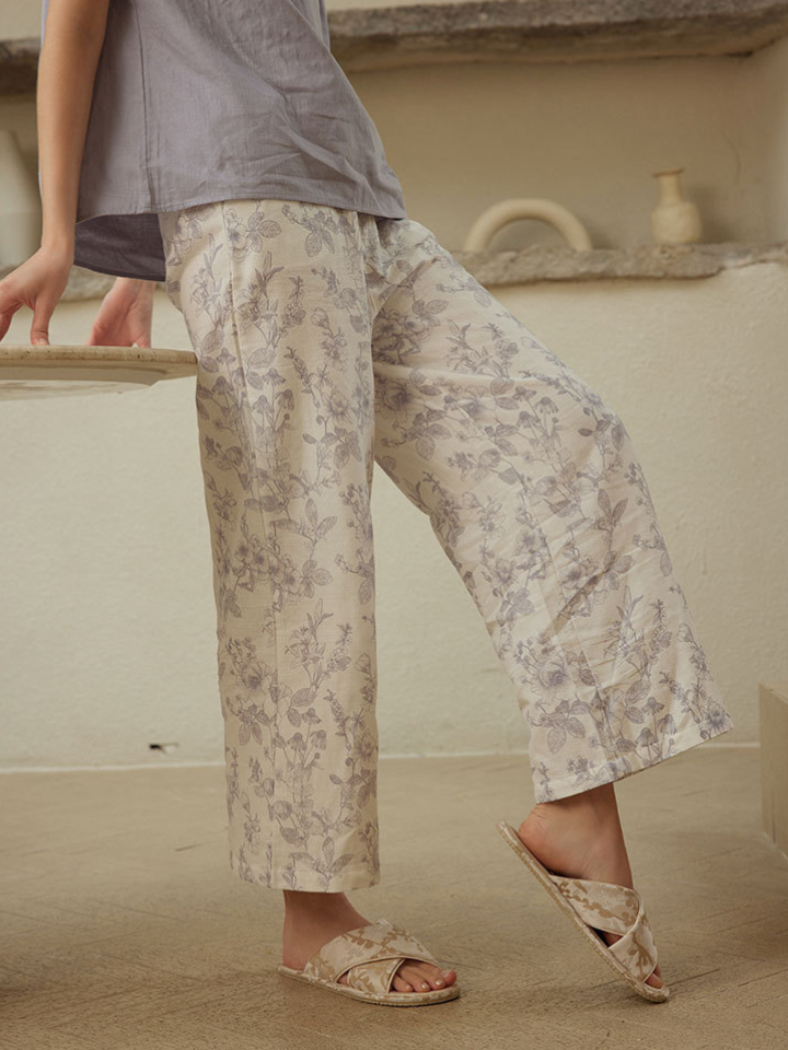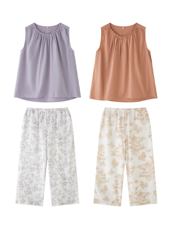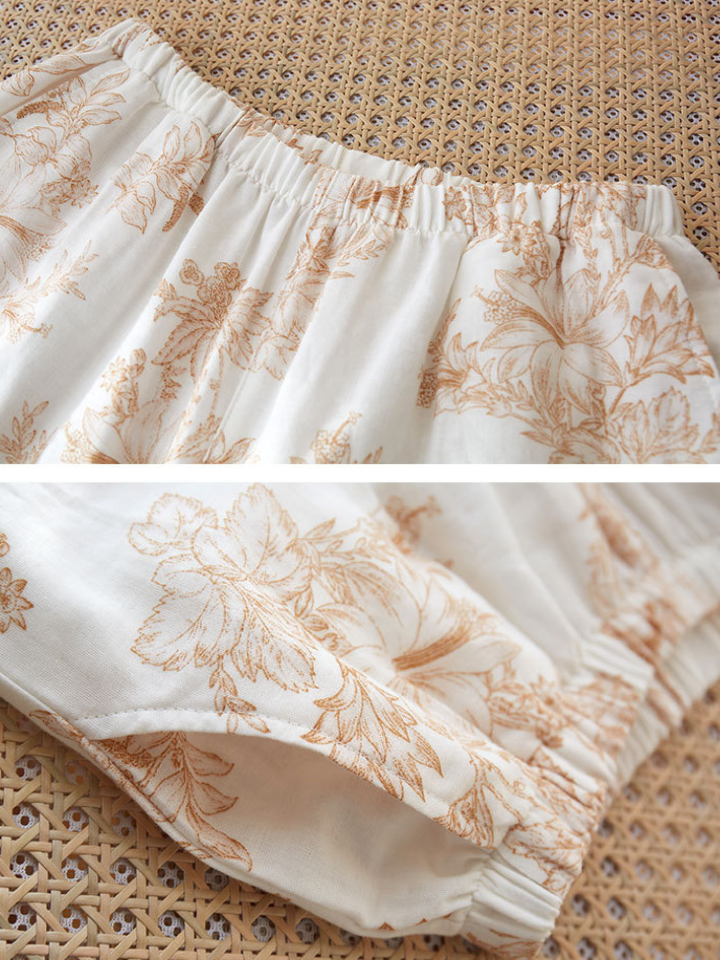 純綿ダブルガーゼ上下セット ボタニカル柄パジャマ