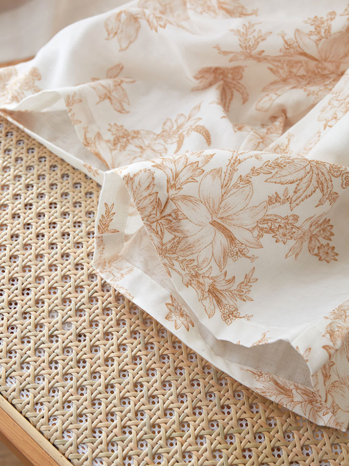白を基調にした繊細なボタニカル柄が、上品で清涼感ある雰囲気を演出します。
