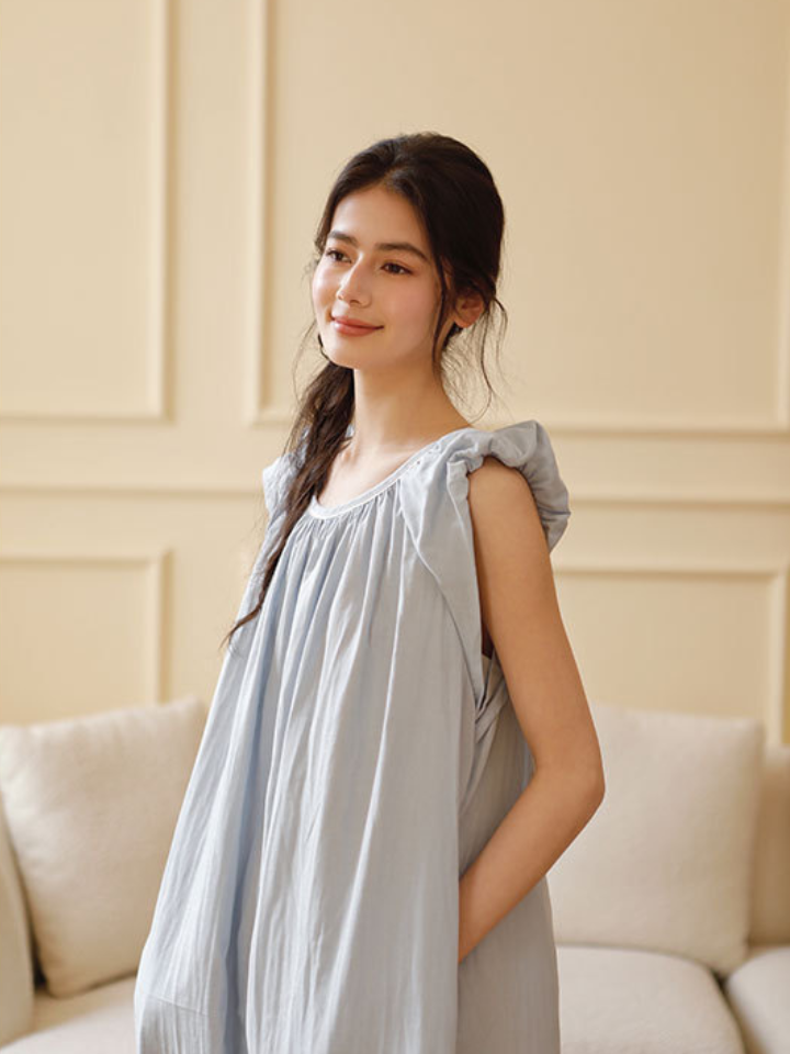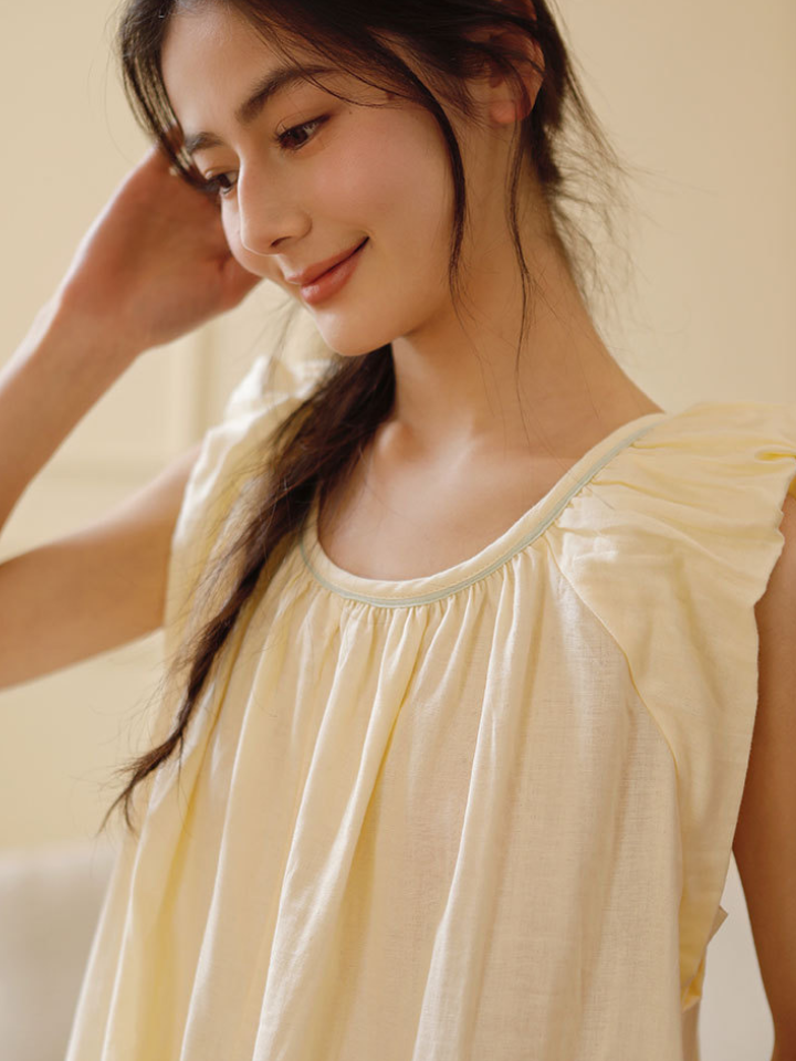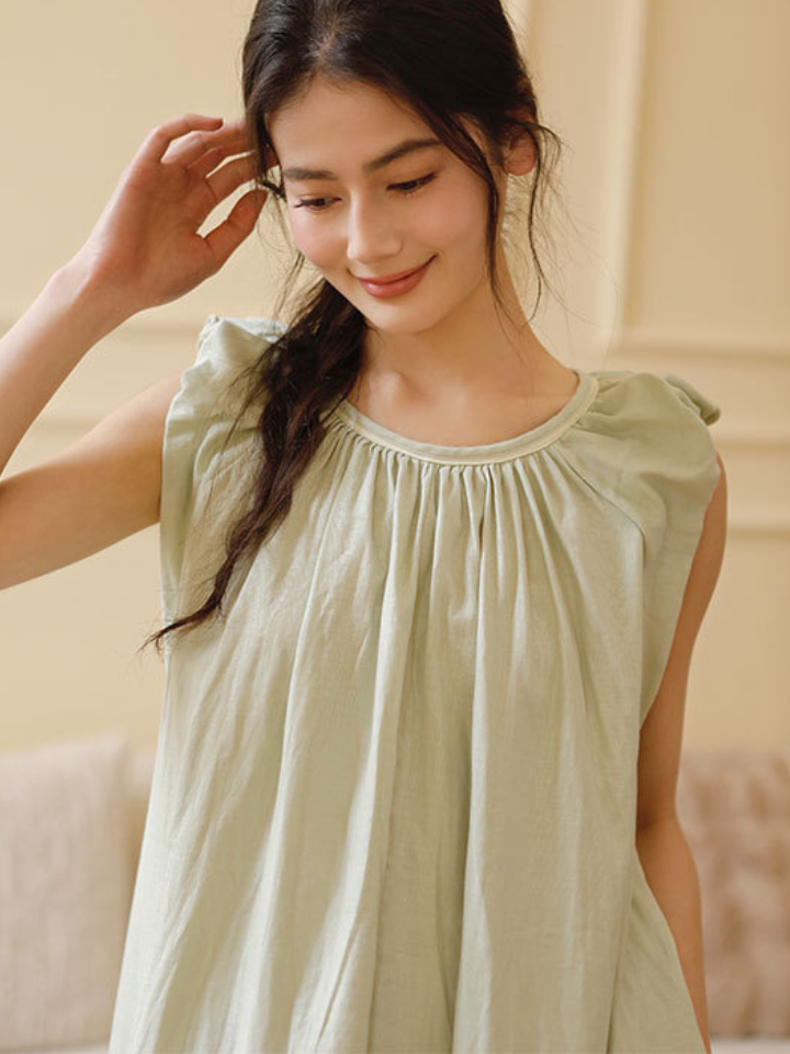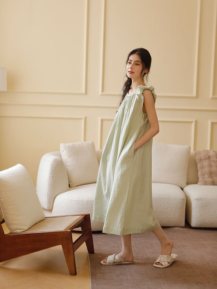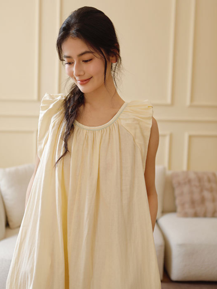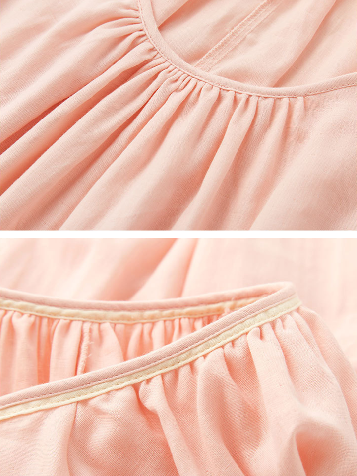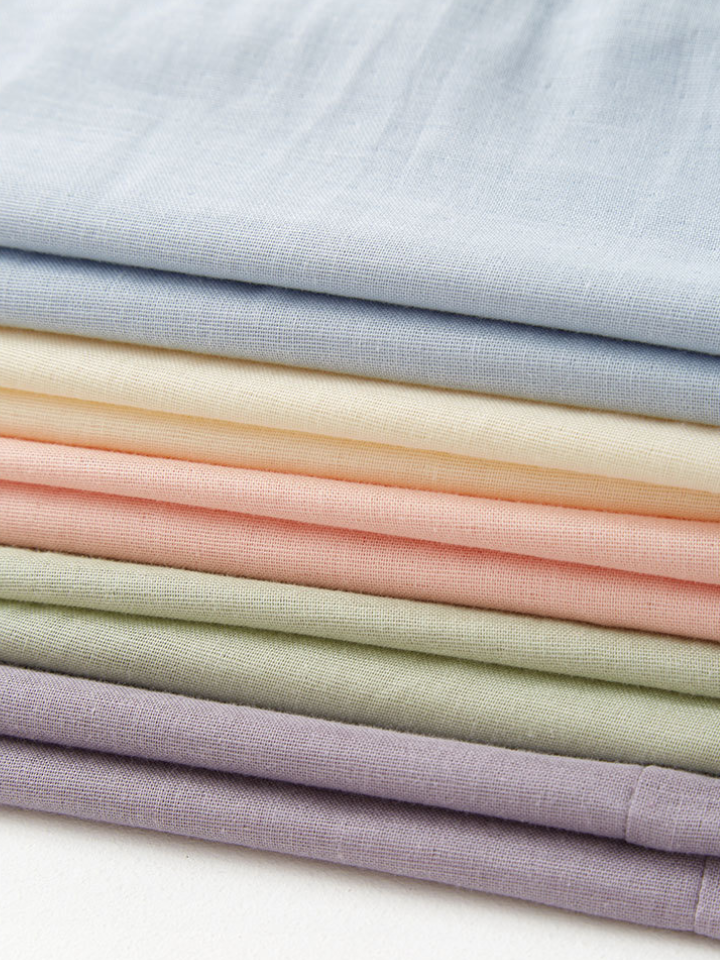 100%綿ガーゼの自然な風合いと、軽やかで通気性抜群のシルエット。