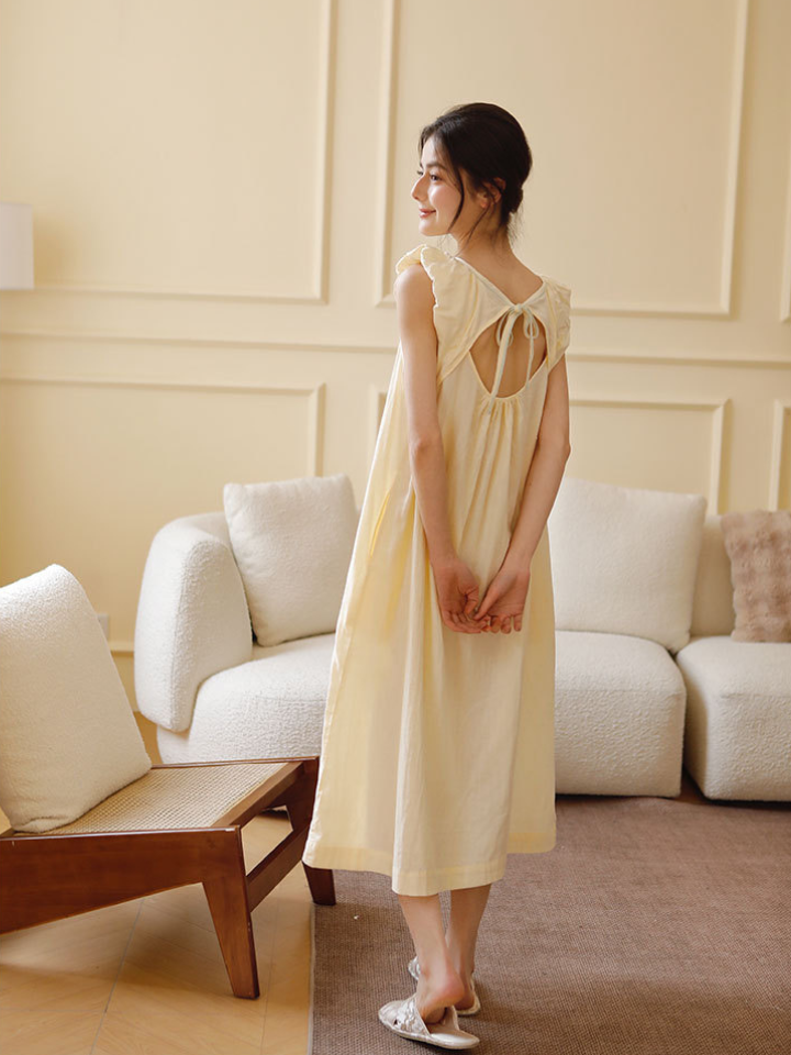 バックリボン結びで背中開き、後ろ姿にもこだわった大人の女性らしさを演出します。